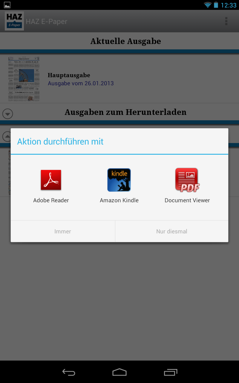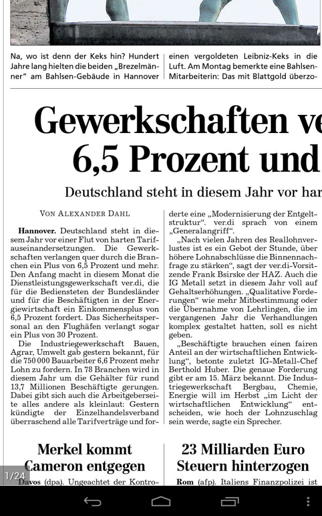 Der zweite Grund steckt in der Formulierung “digitales Faksimile”. Denn genau das sind viele digitale Zeitungen immer noch. Ich habe mal ein Produkt aus dem Norden gewählt. Man installiert eine Android App und kann von dort Ausgaben kaufen und über Google bequem bezahlen. So weit, so gut.